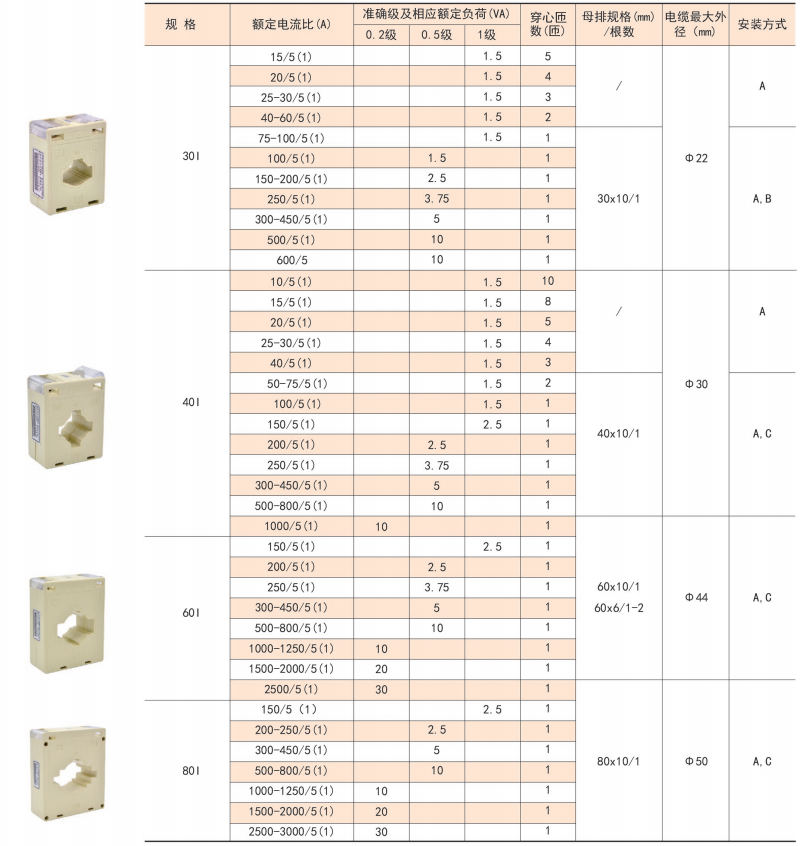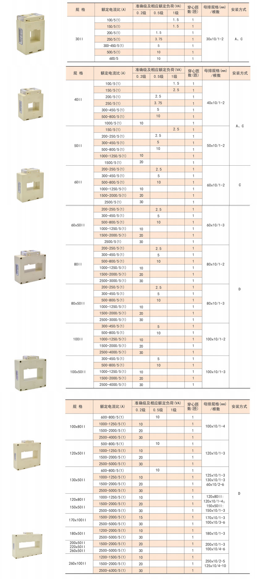 該系列互感器作為交流電流信號采集元件,可與測量?jì)x表配套使用,一次電流測量范圍5-6300A,二次輸出5A或1A,測量范圍為額定值的5-120%。