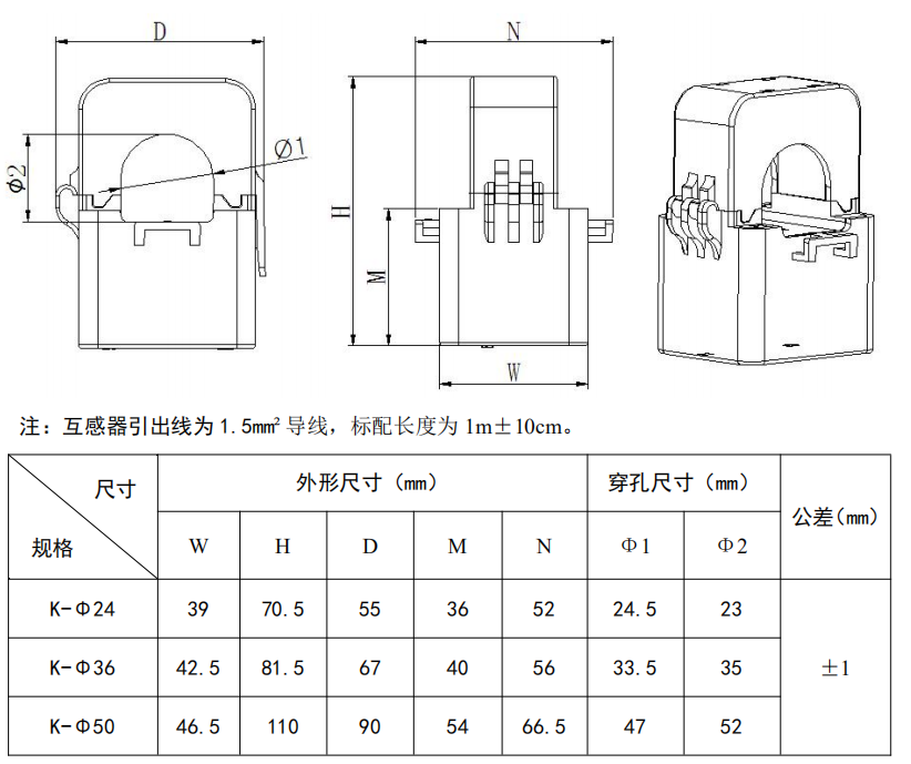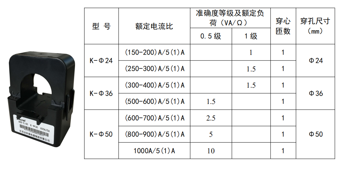 圓孔型穿線(xiàn)纜開(kāi)口式互感器AKH-0.66/K-Φ24:穿線(xiàn)纜直接24mm;精度1級;穿心匝數1匝;電流規格150A~300A