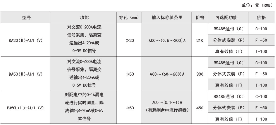 BA交流電流傳感器