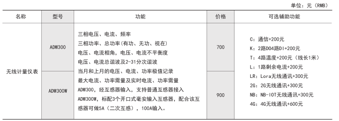 ADW300方便用戶(hù)進(jìn)行用電監測、集抄和管理,可靈活安裝在配電箱中,可用于電力運維、環(huán)保監管等在線(xiàn)監測類(lèi)平臺中。訂貨范例: