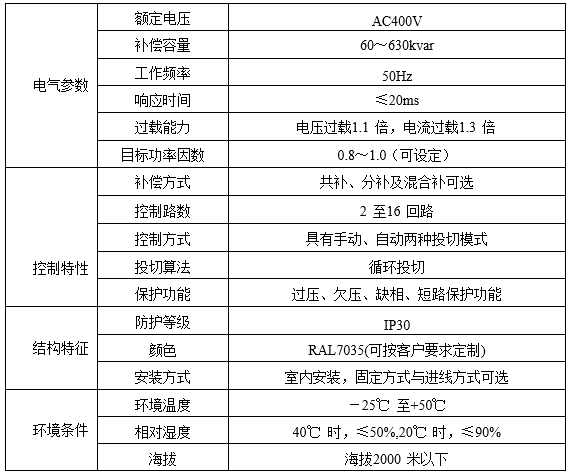 適用于頻率50Hz電壓0.4kV電網(wǎng)的無(wú)功功率自動(dòng)補(bǔ)償。訂貨范例: