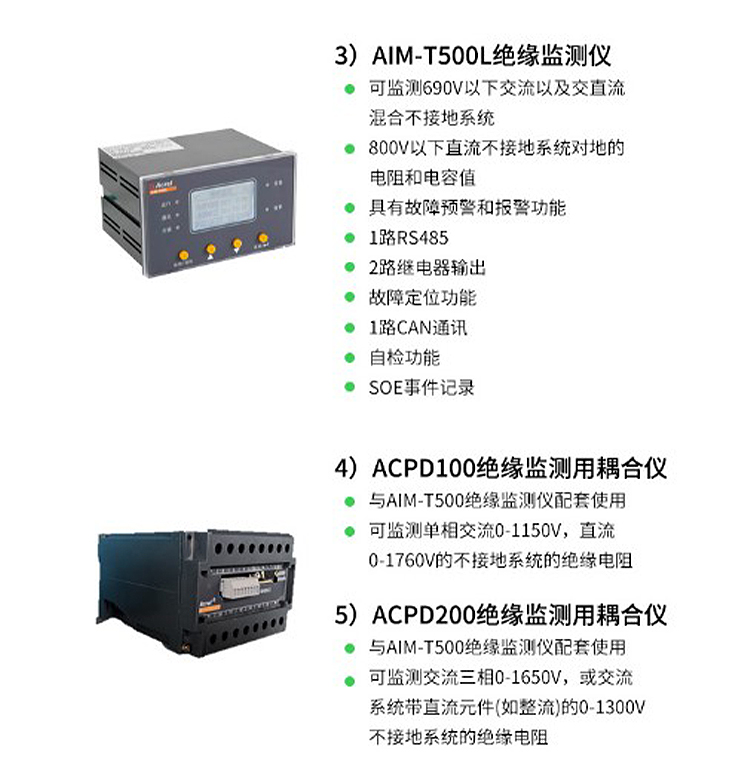AIM-T500L 系列工業(yè)絕緣故障定位系統主要應用于工業(yè)領(lǐng)域如礦井、玻璃廠(chǎng)、電爐和試驗設備、冶金廠(chǎng)、化工廠(chǎng)、爆炸危險場(chǎng)所、計算機中心及應急電源等的交流不接地系統中。
