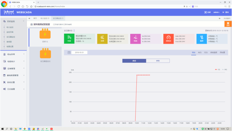實(shí)時(shí)變壓器曲線(xiàn)可監測變壓器的狀態(tài),某天的電壓、電流、功率、用電量等曲線(xiàn)信息。