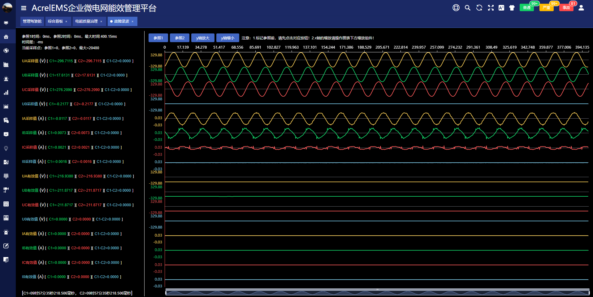 平臺可實(shí)時(shí)監測配電系統的諧波畸變、電壓波動(dòng)、閃變和容忍度指標分析配電系統的電能質(zhì)量。