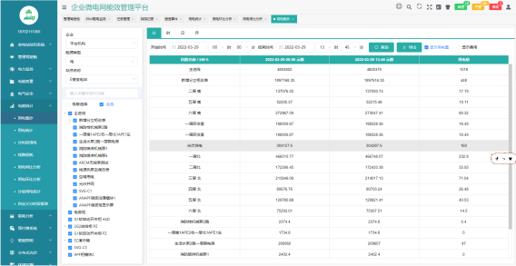平臺具備定時(shí)抄表匯總統計功能,用戶(hù)可以自由查詢(xún)平臺正常運行以來(lái)任意時(shí)間段內各配電節點(diǎn)的用電情況。